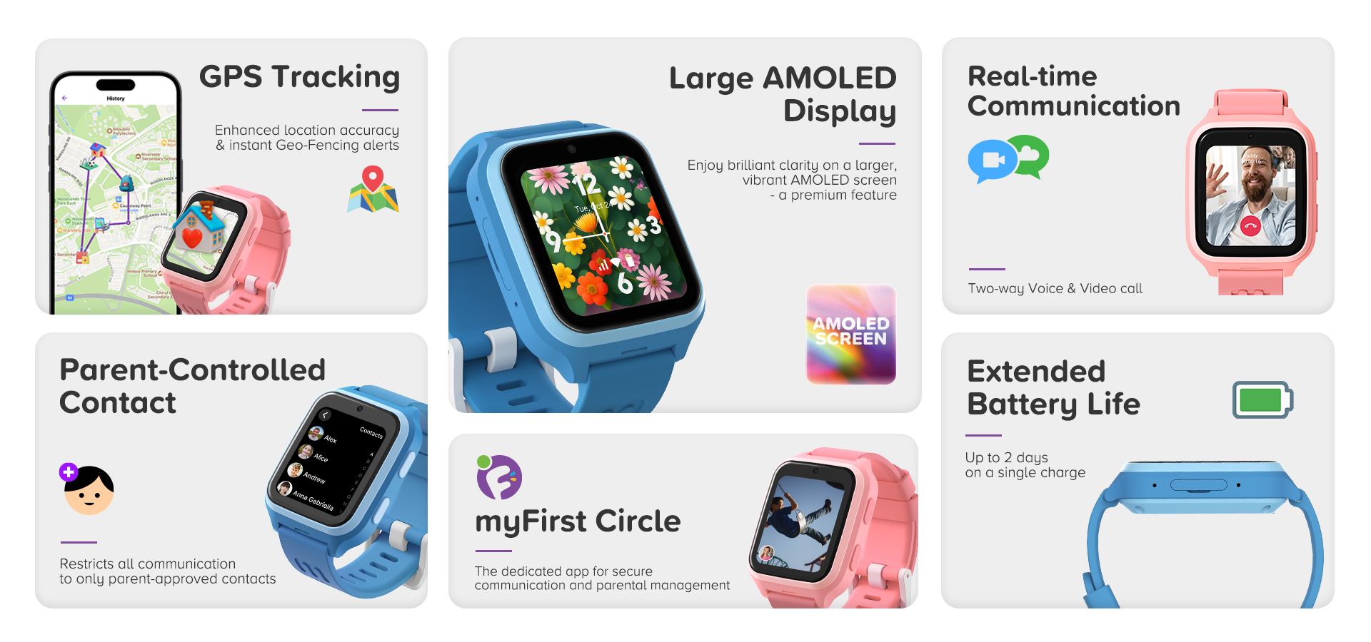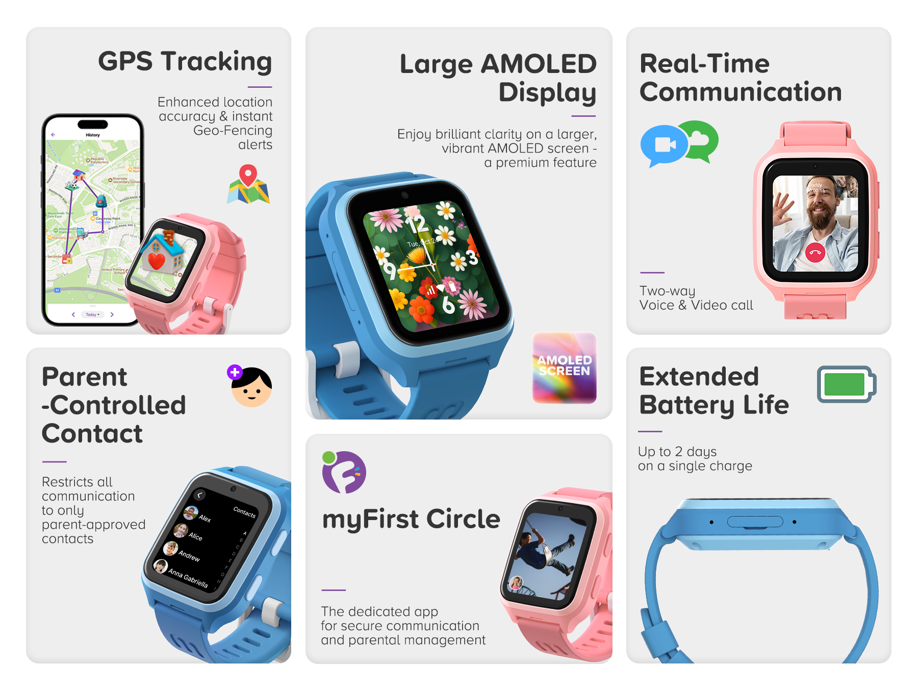 - Ultimate Parental Control: Manage contacts, set safe zones (Geo-Fencing), and track daily activities—all from the myFirst Circle app.