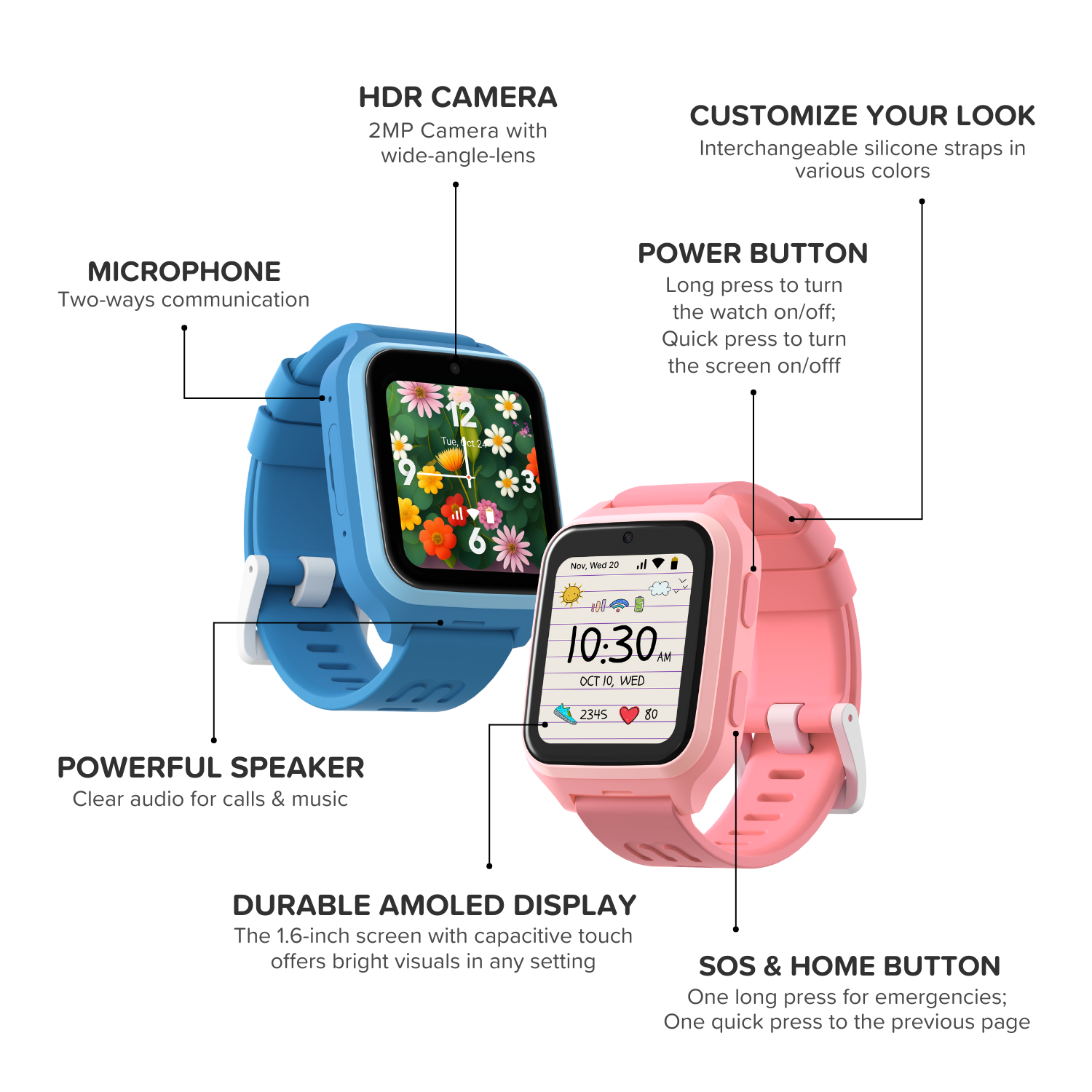 - On-the-Go Music: Kids can listen to their favorite songs or audiobooks directly on the watch or via wireless headphones.