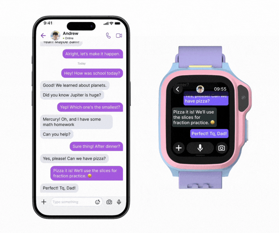 The myFirst Fone S4 introduces magiCode, a revolutionary way to communicate without words. Set custom vibration patterns to send messages, like “I love you” or “Time for dinner,” directly to your child's wrist. It's a distraction-free, fun, and effective way to stay connected, even when they can’t answer the call..